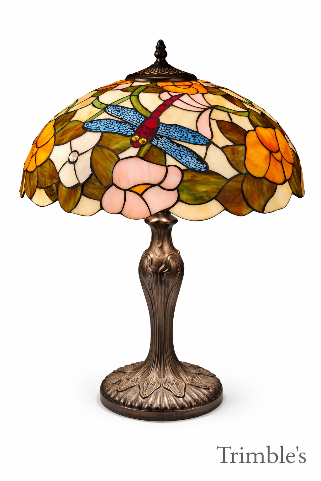 Make a bold and elegant statement with this stunning Large Flower Dragonfly Tiffany Lamp, a beautifully crafted piece that combines vibrant colour with timeless design.