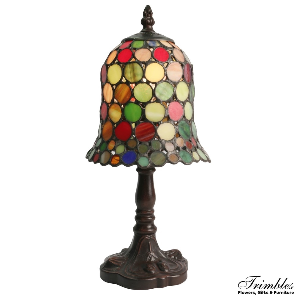 A vibrant pop of colour – our handmade stained glass spotty table lamp is made to stand out.