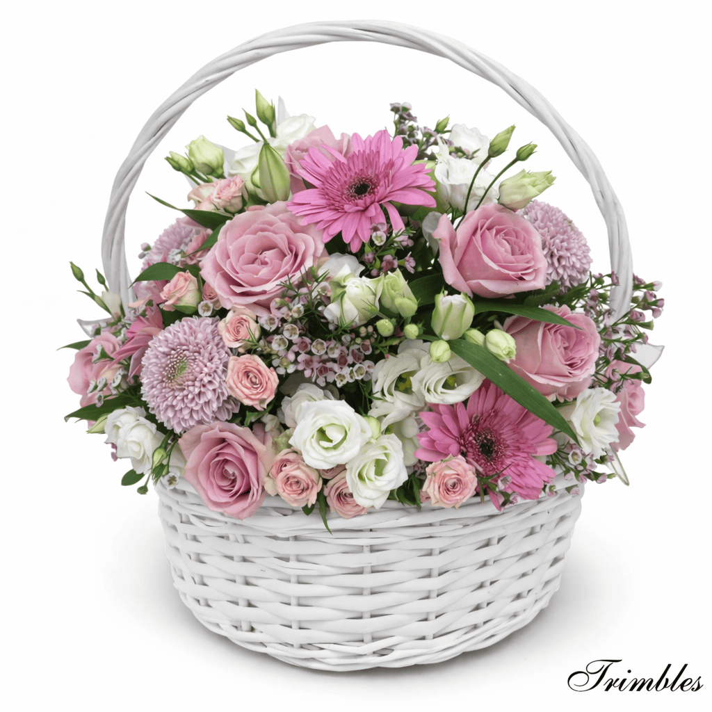 Basket shown is for illustration purposes. Flower varieties may vary depending on availability, while the overall style and pink colour palette will always be maintained.