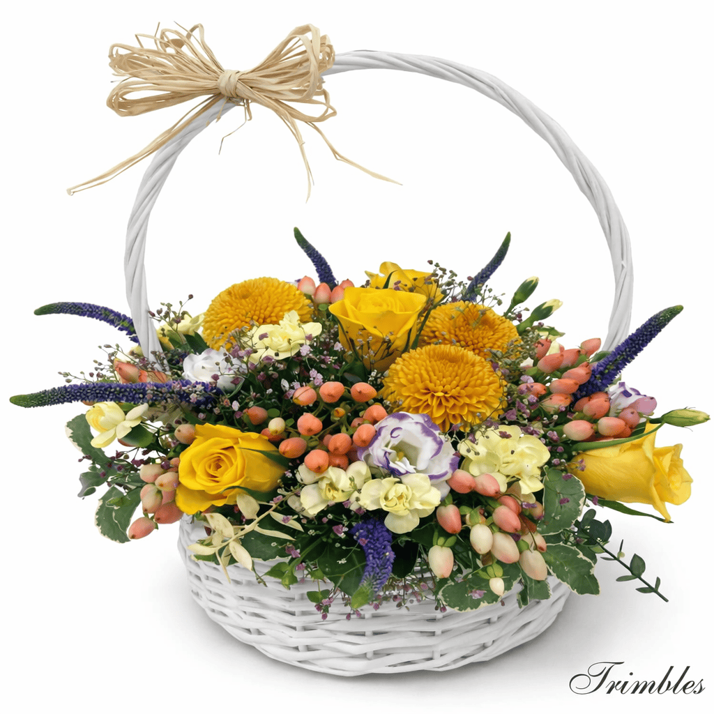 Each basket is thoughtfully arranged to highlight the variety of textures and flowers used. The basket shown is for illustration purposes only, and while individual flowers may vary depending on availability, the overall autumn colour palette and style will always be maintained.
